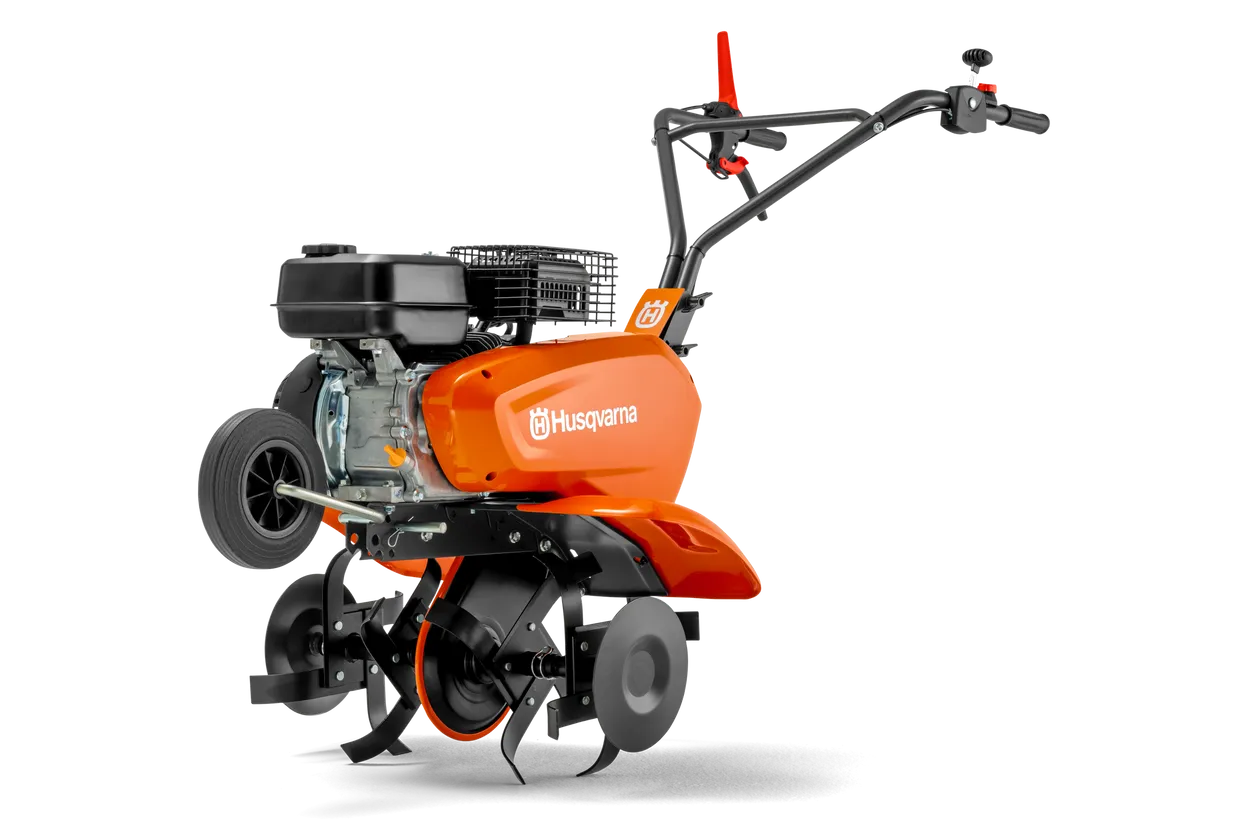 Helppokäyttöinen ja luotettava Husqvarna TF225 jyrsin on varustettu tehokkaalla ja helposti käynnistyvällä Rato-moottorilla. Säädettävä ja taitettava työntöaisa, kaksoiskantokahvat ja kuljetuspyörä helpottavat säilyttämistä ja kuljettamista. Vetotanko parantaa tasapainoa, ja piikkisuoja ja kasvisuoja vähentävät roskien määrää sekä ehkäisevät kasvustolle aiheutuvia vahinkoja. Lisävarusteena on saatavana metallipyörillä varustettu vakoaura.