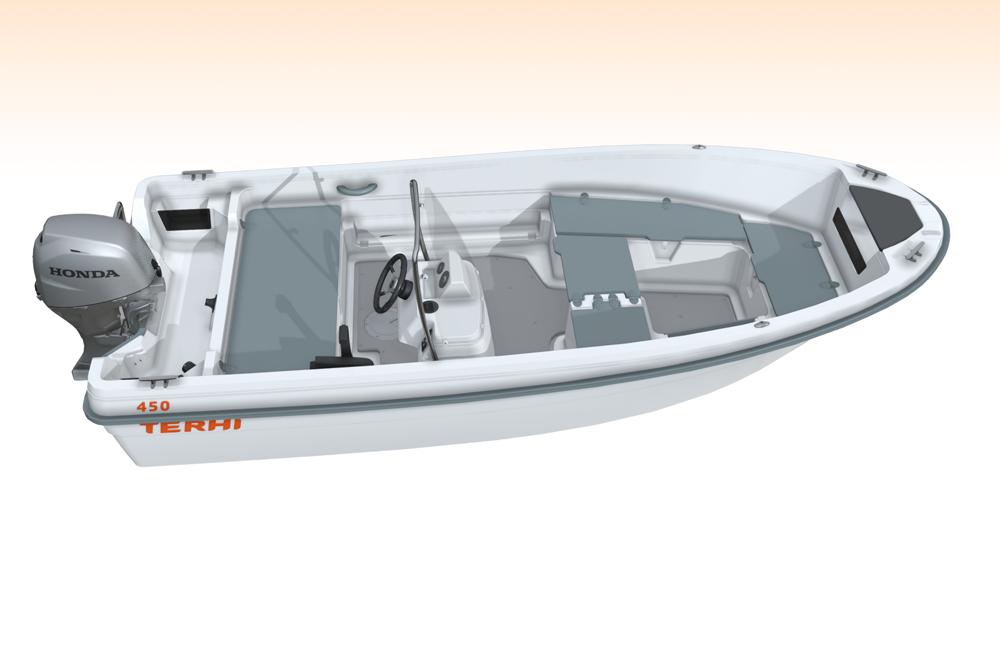 Terhi 450 C on sivupulpetillinen mökki- ja yleisvene, joka on erittäin vakaa ja tasapainoinen. Vahvistettu peräpeili mahdollistaa jopa 40 hv:n perämoottorin asentamisen, joka parantaa kuormansietokykyä sekä helpottaa liukuunnousua. Soveltuu mökille, kalastukseen, verkkojen laskuun/nostoon tai vaikkapa huviveneilyyn ja retkeilyyn.